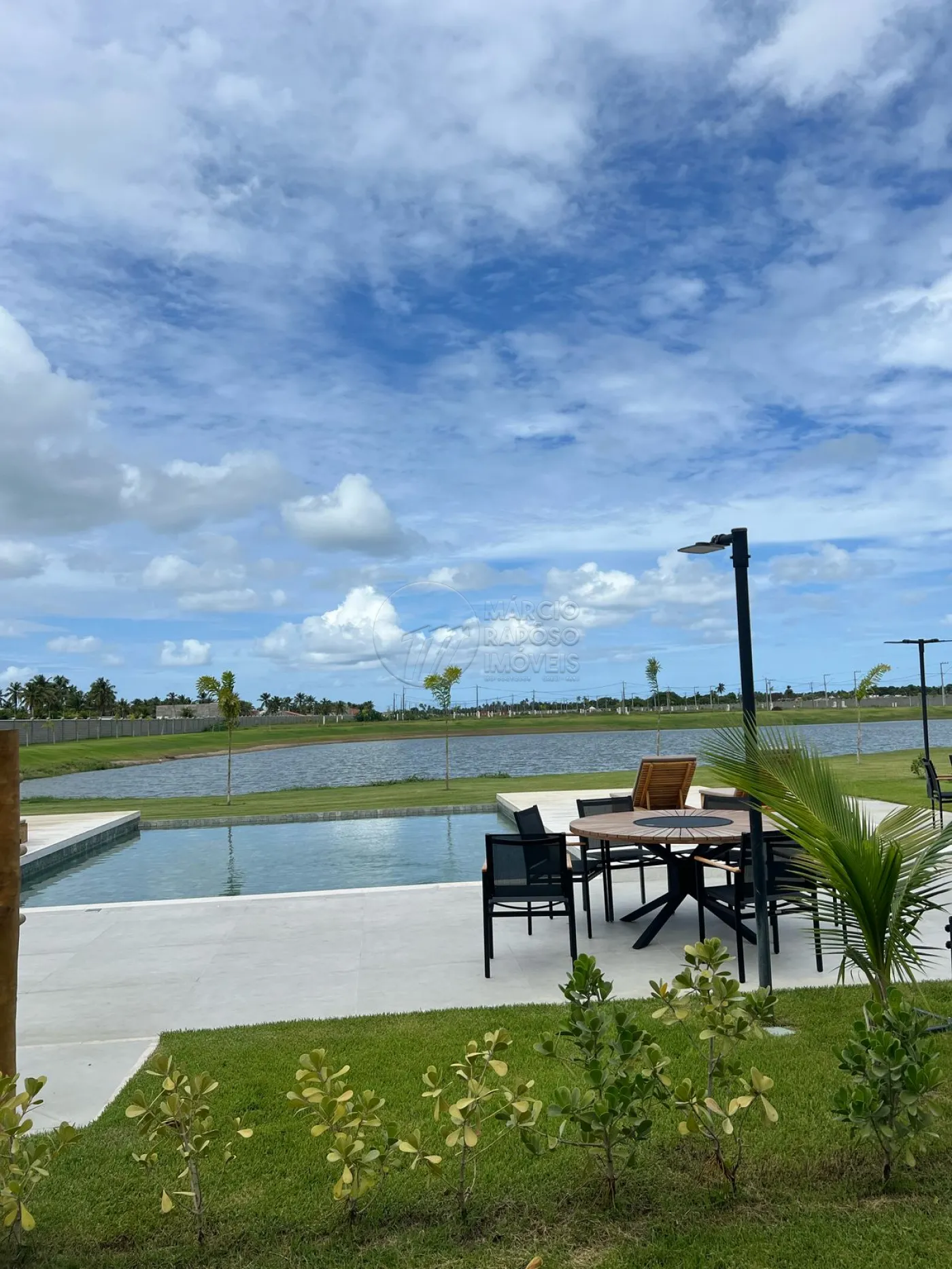 * Clube Naútico: salão aberto, vista para lagoa, lounge, deck de madeira, academia e área com piscina.