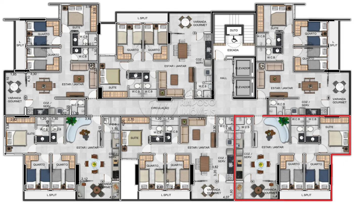 Apartamento com 82,76m², na seguinte configuração: