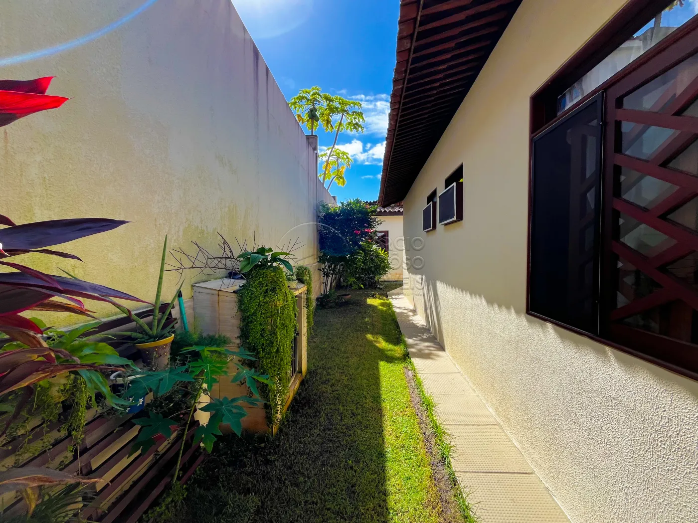 * Quintal amplo e verdejante: Um espaço perfeito para relaxar, brincar com as crianças ou receber convidados para um churrasco.