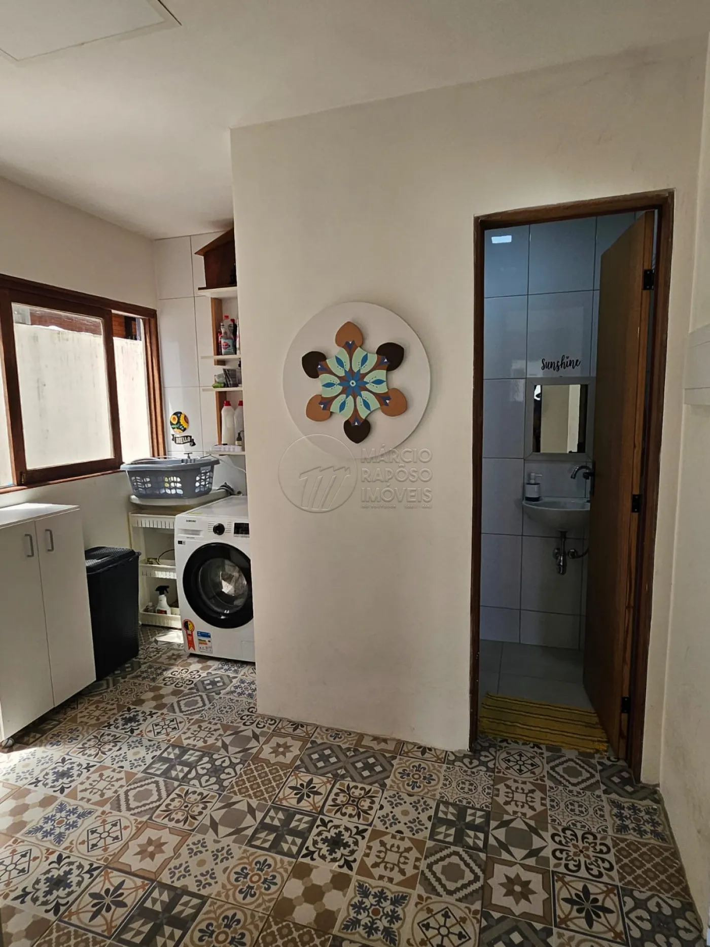 Área Térrea: sala de estar ampla (2 ambientes), sala de jantar e cozinha com pisos porcelanato luxo e plafons de led. Porta central e janelas de madeira jatobá e vidros. Espaço do lado da cozinha para armazenamento (taças, copos, alimentos ou eletrodomésticos) com armários MDF. Lavabo e área de serviço.