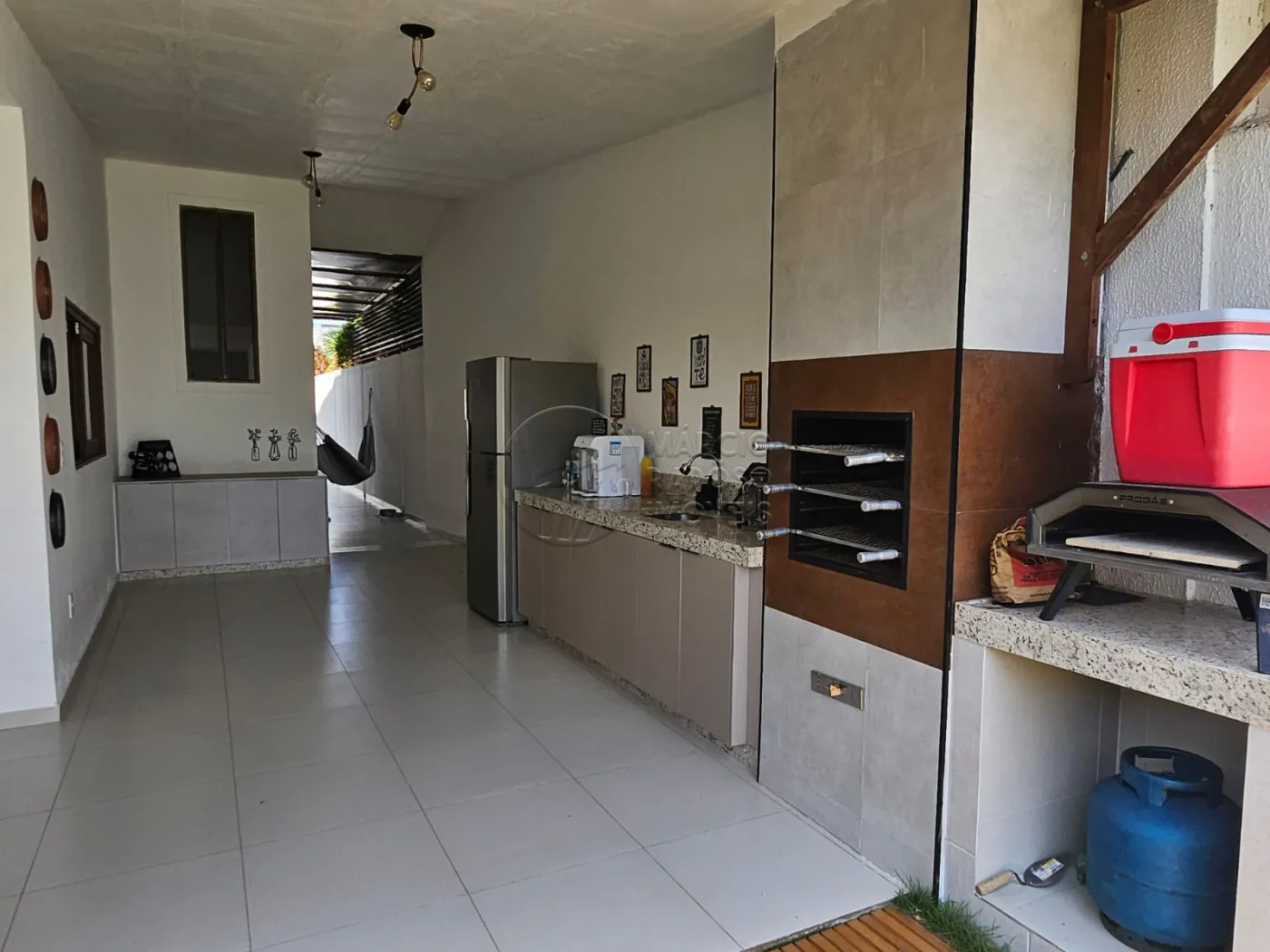 Área de Lazer em `L` bem espaçosa: churrasqueira, forno de pizza, 02 armários MDF planejados novos, área para jogos, suíte confortável para hospedes (ar condicionado Split), home office (ar condicionado Split) para 02 ambientes (escritório e oficina ou ateliê) com armários MDF planejados novos e área verde com projeto para futura piscina.