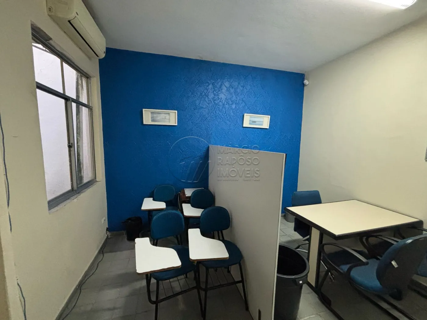 Primeiro andar: recepção, 5 salas e 2 banheiros.