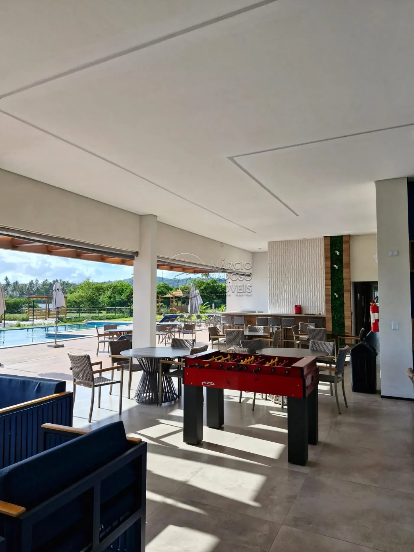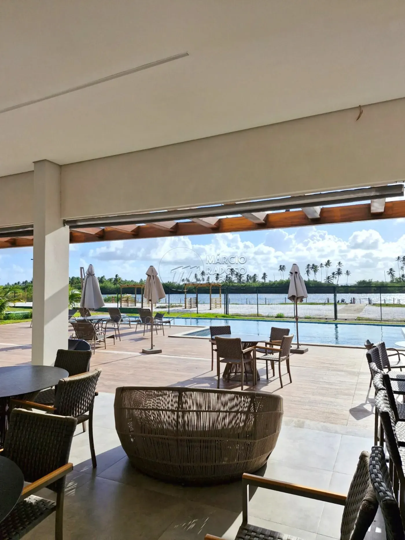 * Clube Naútico: salão aberto, vista para lagoa, lounge, deck de madeira, academia e área com piscina.