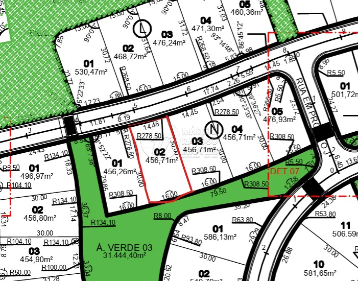 Terreno 456,71m² localizado na Quadra N lote 02, nas seguintes medidas: