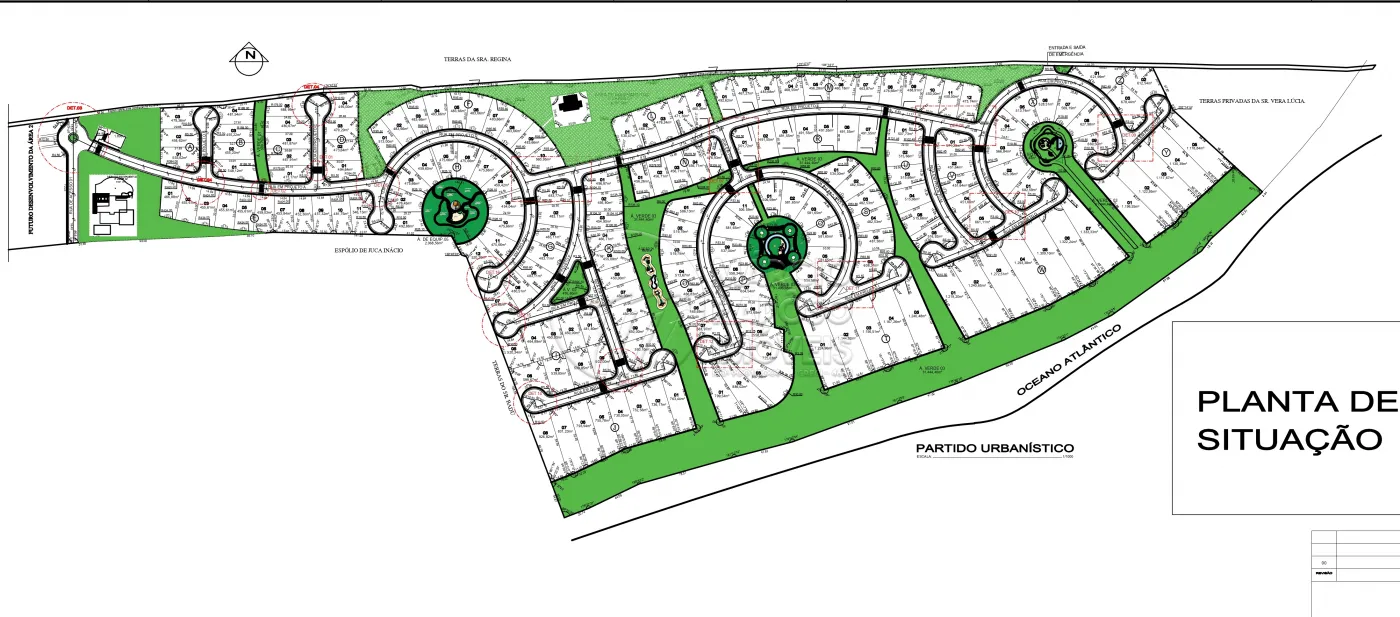 Conceito: Condomínio de lotes `pé na areia` com projeto de urbanismo que prioriza a privacidade (muitos lotes não possuem vizinhos de fundo).